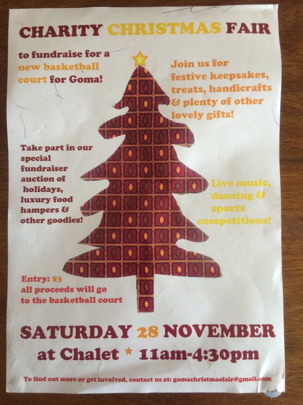 A fun day out with all the family with gifts for relatives, and treats to keep for yourself, live music, dancing and sport competitions. Invite as many people as you can so we can meet our goal of raising enough money to build a new basket ball court for the Goma community.