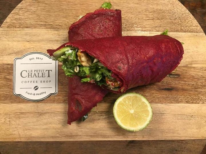 The beetroot wrap comes with feta spread, salad and spinach with apple honey dressing, cucumber, apple, walnuts and mixed seeds for $6